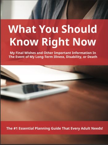 Protect your peace of mind, and more importantly, the people you love with the one thing that thousands of people every day only wish that someone gave them years ago. It is called "What You Should Know Right Now… My Final Wishes and Other Important Information in The Event of My Long-Term Illness, Disability, or Death.”